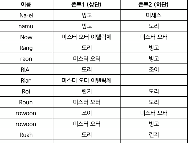* 이름을 클릭하면 해당 제품 페이지로 이동됩니다