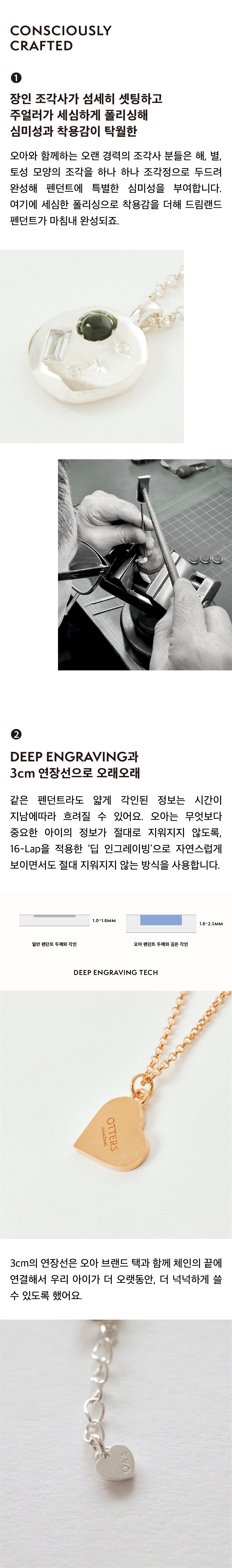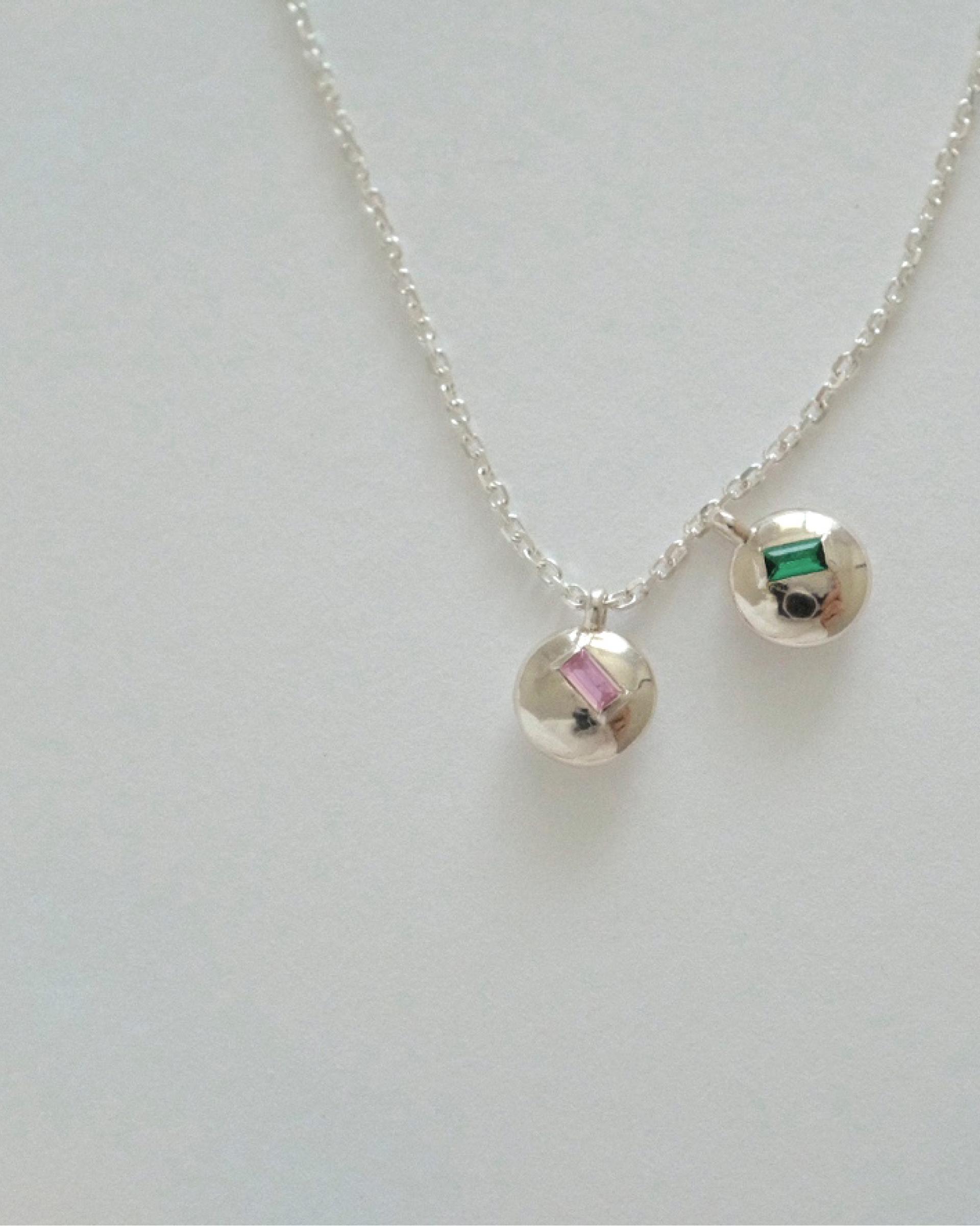 세상에서 가장 작고 반짝이는 별이 찾아왔습니다. 아이를 향한 엄마의 생각을 상징하는 서클 셰입의 볼륨감 있는 펜던트에 아이의 탄생석을 색다른 바겟트 조각으로 세팅할 수 있는 네크리스로, 커브 체인과 함께 매치되어 반짝거림이 남다르답니다.